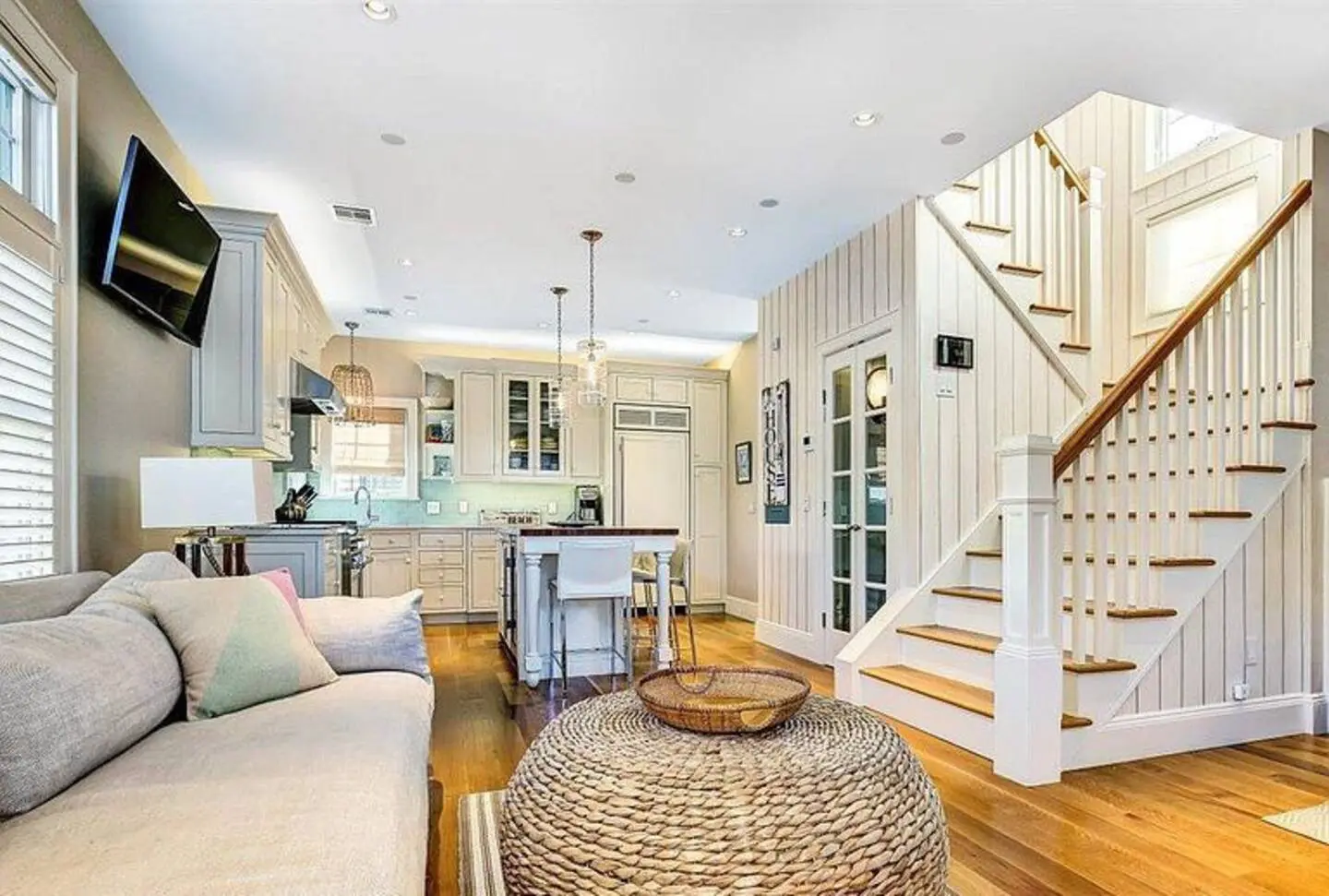 Our house has a lot of technology and controls of the temperature, lighting, music and TV. The panels you see in the kitchen and on the stairs control all of those. If you go to the panel at the stairs and click on it, you’ll see the different rooms with “watch” and “listen” options. The family room and the kitchen share one apple TV so they both will be showing the same thing. *PLEASE DO NOT TOUCH THE SERVERS THAT CONTROL THE HOUSE! (located in the room under the stairs)