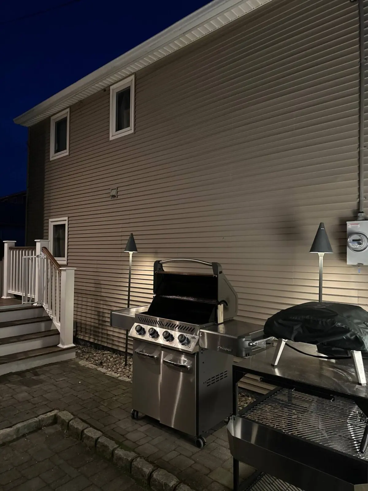 Patio: The lights for the patio are located by the stairs to the left of the shed door and has a protected case. The lighting for the patio lights can be dimmed and controlled by the wall panels inside. The outdoor TV cover must be on whenever not in use.