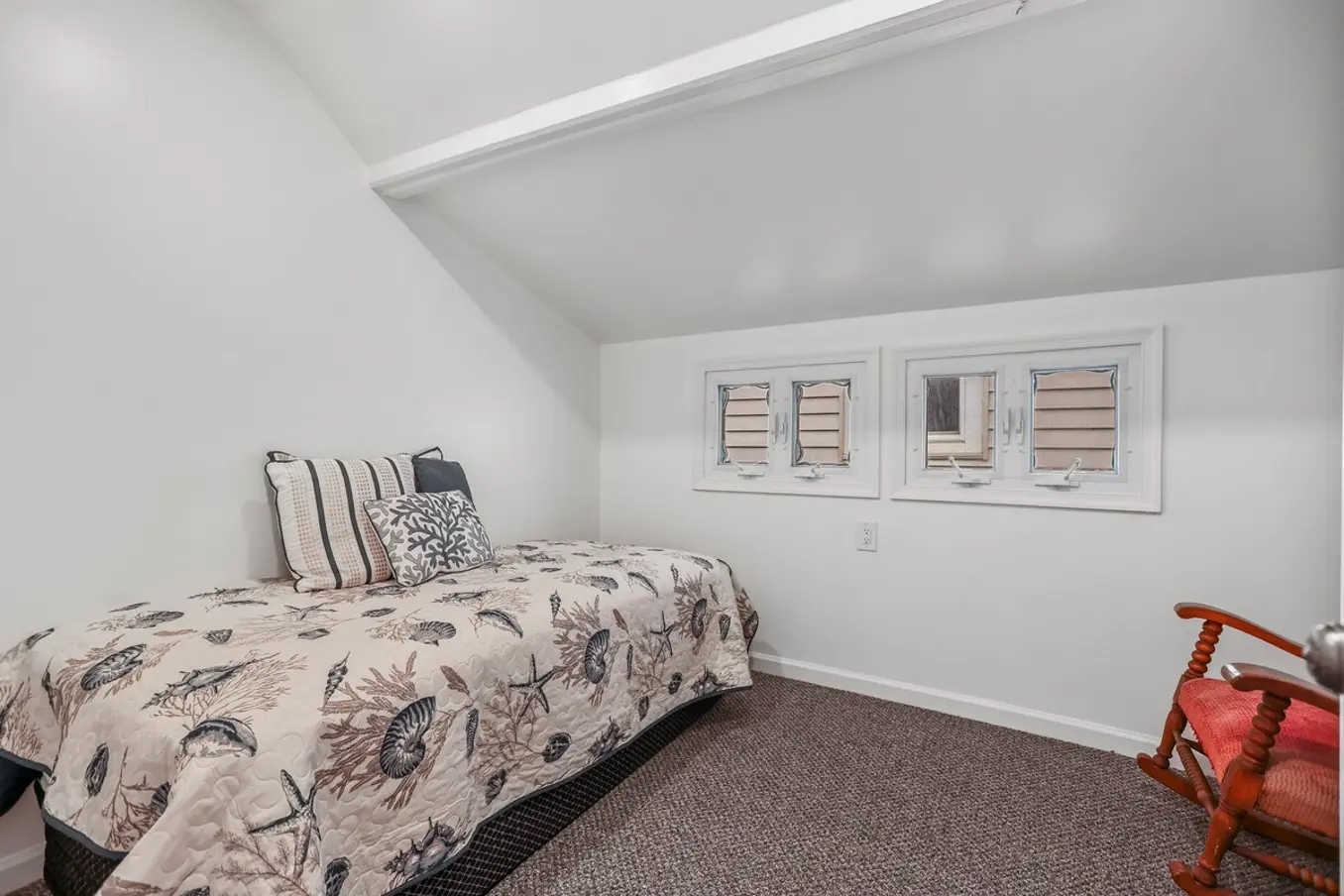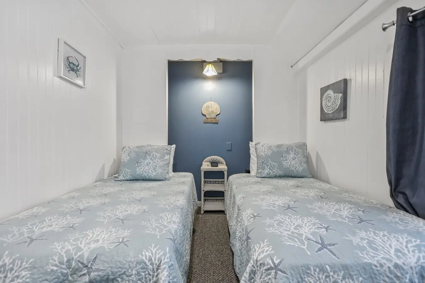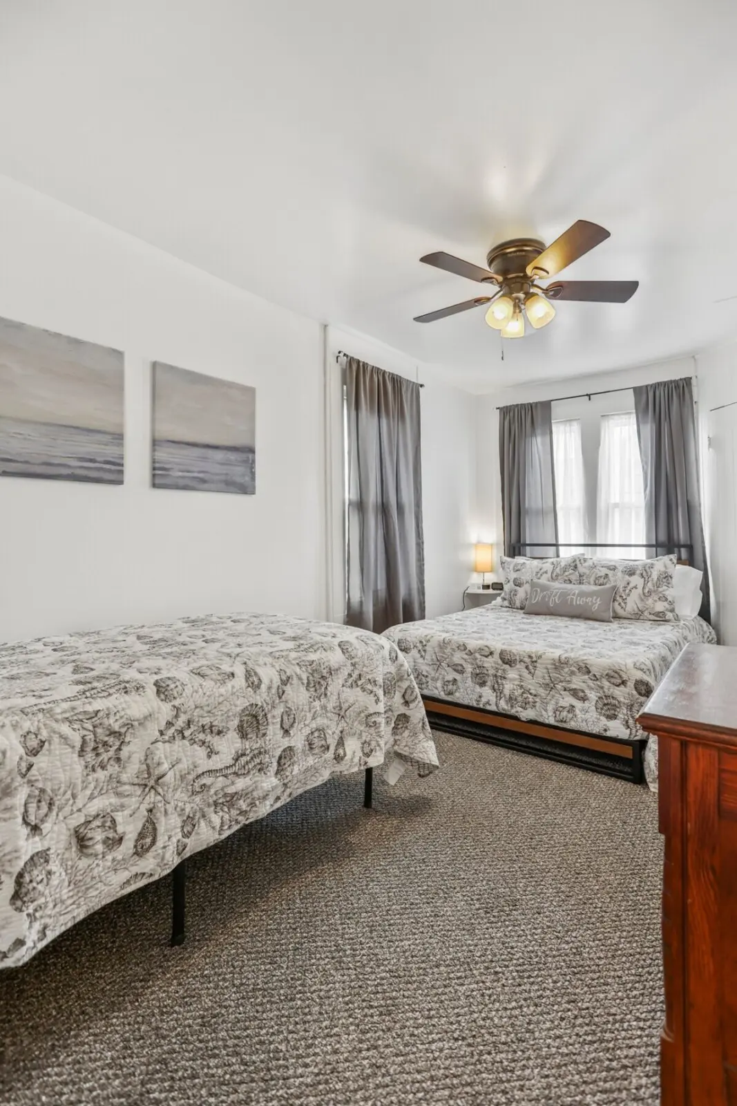 **BEDROOM 5 is also on the second floor and features a full-sized bed and a twin bed, offering flexibility for sleeping arrangements.