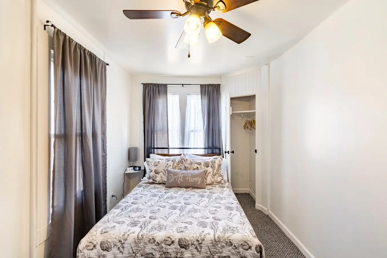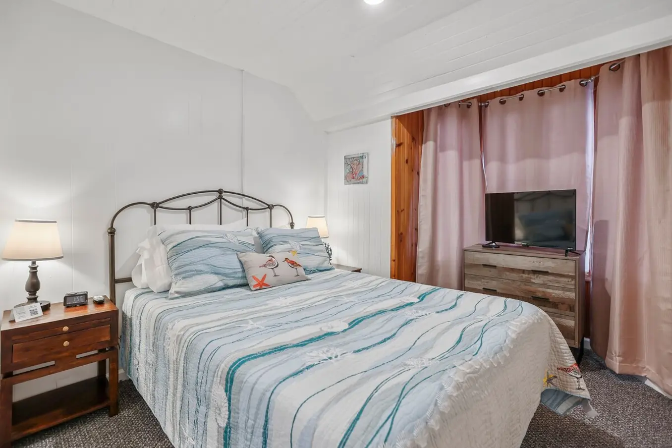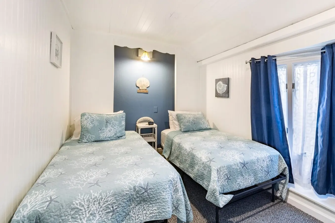 **BEDROOM 5 is also on the second floor and features a full-sized bed and a twin bed, offering flexibility for sleeping arrangements.