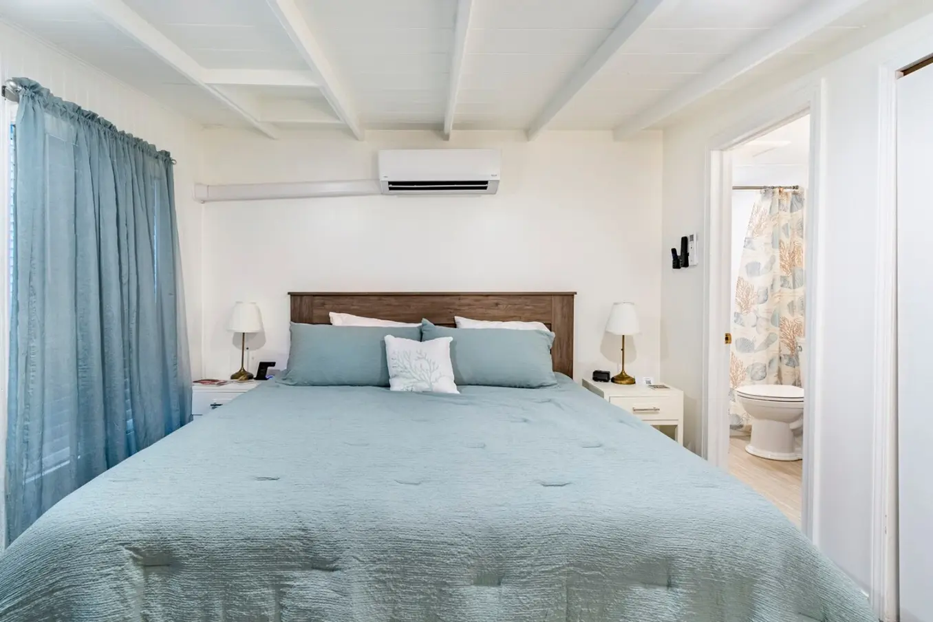 **BEDROOM 1 is on the first-floor bedroom features a luxurious king-sized bed with soft, high-quality linens, attached bathroom and plenty of closet space to store your belongings.