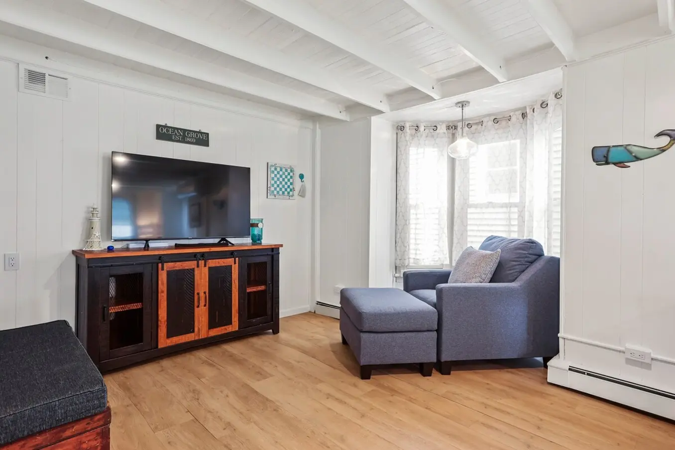 Welcome to our beautiful Victorian cottage just a one-minute walk from the beach and boardwalk in Ocean Grove, NJ! Our lovely home, now dog-friendly, is perfect for families or groups of friends looking for a cozy and comfortable retreat by the shore. With five bedrooms, three and a half bathrooms, off-street parking, and plenty of space for up to ten guests and their furry companions, our cottage is the ideal home base for your next beach vacation.