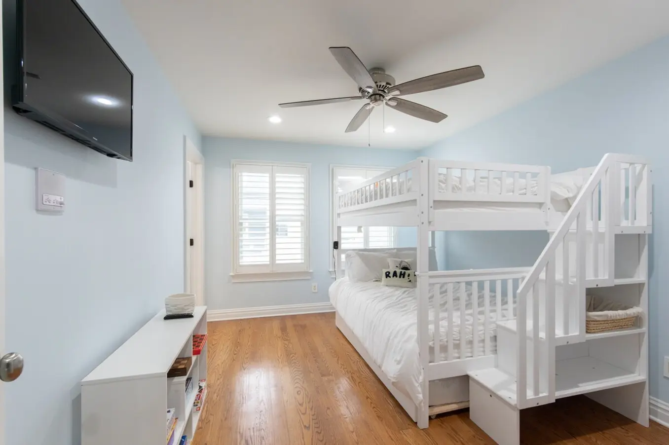 – Bedroom 3 is also on the 2nd floor with a bunk bed. There is a full size bed on the bottom, twin up top and pull out trundle. This room also has its own en suite bathroom.